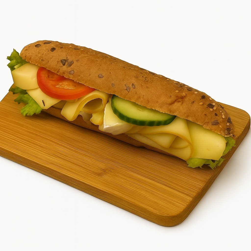 Lehká cereální bageta s jemným pomazánkovým máslem a sýrem gouda. Výborná svačina pro milovníky sýrové chuti.