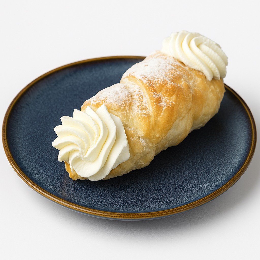 Listové těsto plněné nadýchanou šlehačkou. Lehký a jemný dezert.