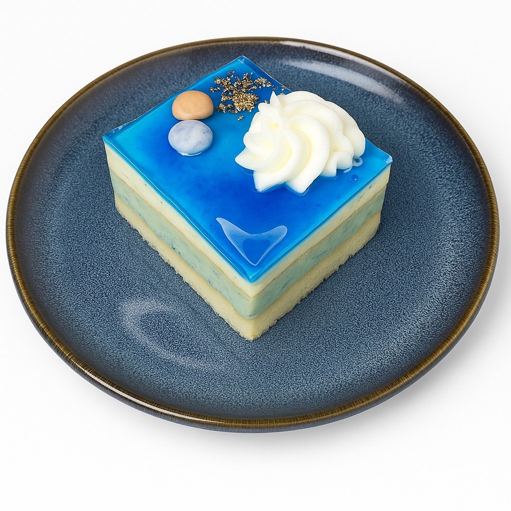 Světlý piškot s jemnou smetanovou šlehačkou, ochucenou karamelovou šmoula příchutí.