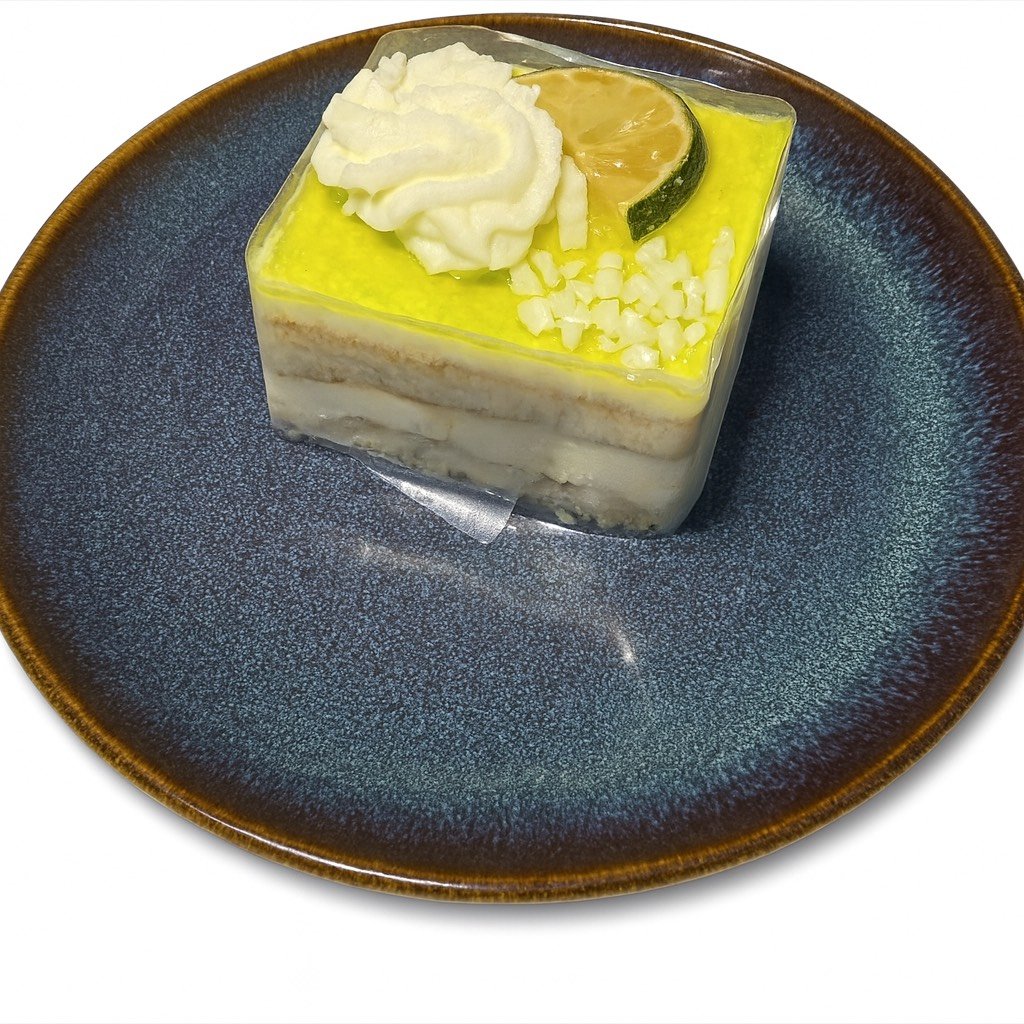 Světlý korpus doplněný osvěžující citrónovou šlehačkou a limetovým gelem na povrchu.